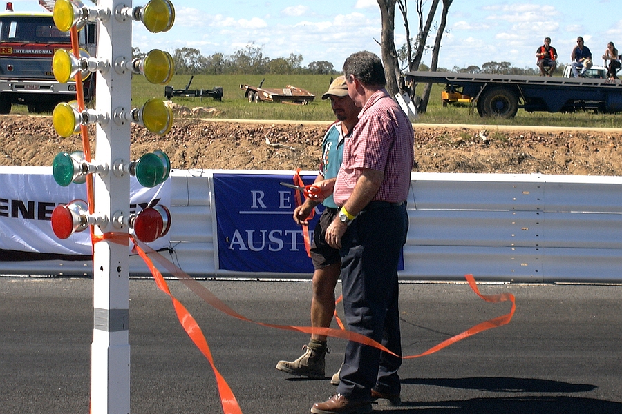 and the SWDRA President, Konrad Crawford, cut the ribbon to officially open Ironbark Raceway. The track was opened